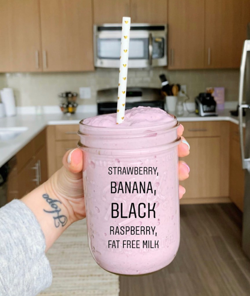 Smoothies are a great way to add fruits (and veggies) into your kids diet and your own. Use your milk of choice or yogurt (I like to use fat-free or silk almond milk), cut up some fresh fruit, such as bananas, mixed berries, pineapple, mango etc and freeze them. You can use them in future smoothies and you won’t have to use ice, which causes the smoothie to get watery. Blend your milk, fruit and other toppings of choice, such as peanut butter, chia seeds, or throw in some riced cauliflower (your kids will have no idea as the color won’t change and it doesn’t taste like cauliflower!) Pour into their favorite cup ( here is one of mine ) and pour yourself one!