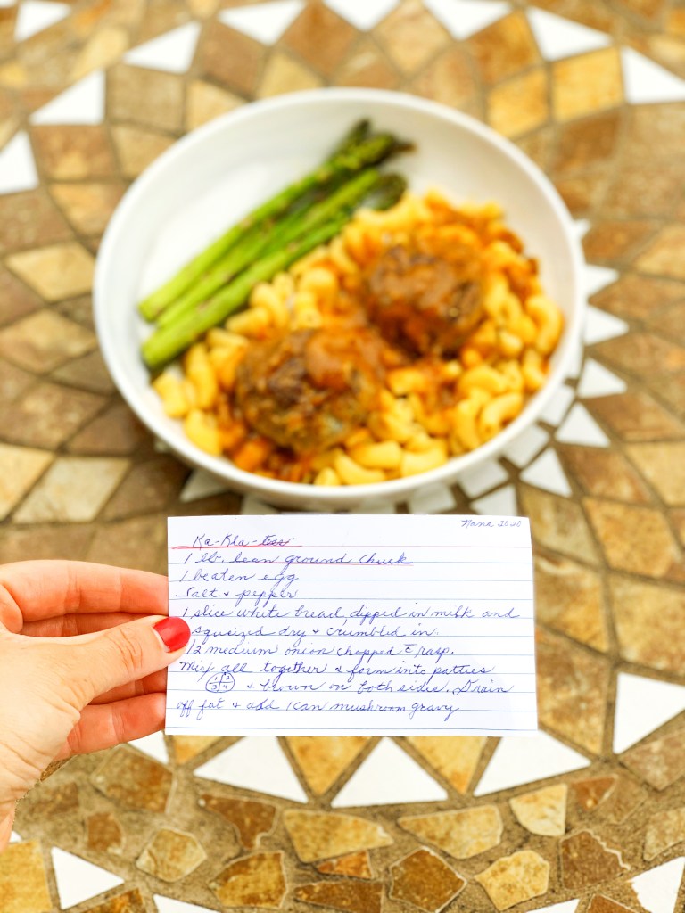 Wow, did these bring back the memories of my Nana babysitting us when my parents went out. My parents would drop my brother and I off at Nana’s (right across the field) and she would make us her mother’s Lithuanian hamburger dish, “Ka-Kle-Tee’s, which she grew up eating. I have never made them before and had the idea last week to call Nana and ask if she could write some of her family recipes for me and put them in a zip lock out on her porch for me to pick up. I told her I wanted to try to make one every week, because to me anything that brings the memories of home-is so comforting right now. I stopped by Nana’s house and said hi from afar, ugh it was so hard not to go inside and sit at the kitchen table with her, eat the jelly beans when you walk, read a magazine and just chat. For now, Nana is keeping busy writing me recipes weekly and enjoying how much I love the recipes, did I mention she is 94! She is reading a book every week, getting up and getting dressed and enjoying her cherrios and coffee. Nana life is simple, loving and delicious. I hope this recipe brings you to a time of a more simple life & warms your heart with comfort.