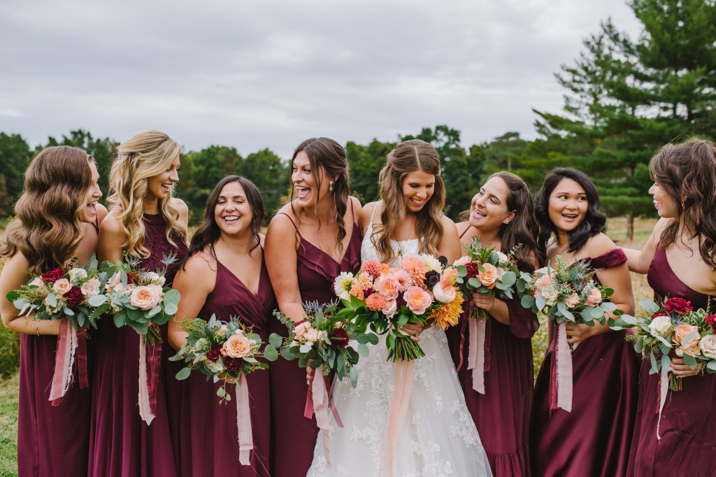 My bridesmaids wore dresses from David’s Bridal they all picked out their own style, but all had the color Merlot on. Each bridesmaid looked absolutely gorgeous and I am so happy with the color choice for Fall!
