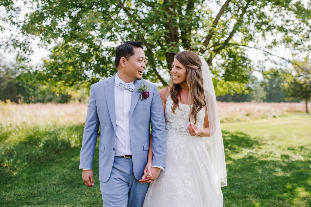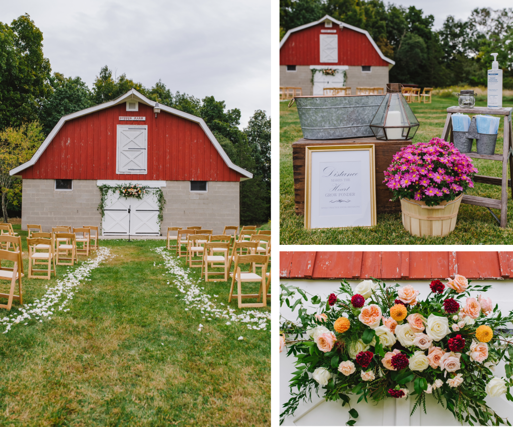 The ceremony was in my Nana’s backyard, in front of the beautiful red barn that my poppy built. I have always dreamed of having my wedding here since I was a little girl. My dad grew up in my Nana’s house and when my parents got married, my Nana and Poppy gifted my parents half of their farm land, for them to build a house on. My father and poppy built the house I grew up in, just a short walk through the field. As a little girl I would spend a lot of time with Nana and Poppy and would run across the field to visit them, this was where I walked down the aisle, with my dad by my side. My dad whispered as we were walking down, “don’t be nervous, you have walked down this aisle thousands of times, you got this”. After the ceremony, our guests walked across the field to my parent’s backyard. Everything was open air. We had socially distant tables, hay bails for people to sit on, cocktail tables for people to enjoy drinks, a picnic blanket space and more. I am one lucky girl to have had the chance to get married where I did. Cost: $0