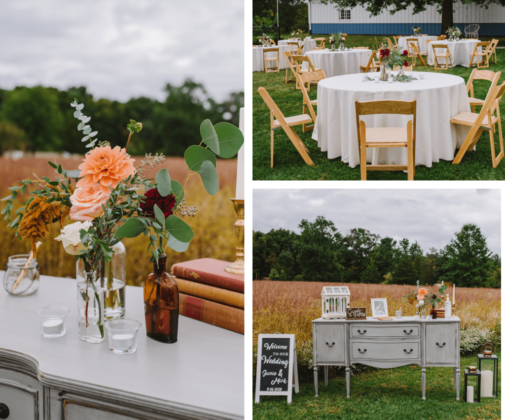 THANK YOU to my very good friend Lauren at @laurenstewarthome for all the help with decor! Lauren watched facebook marketplace like a hawk for amazing pieces, her father dropped off garage sale items that we used and she came over and brought so much of her own decor and helped set up everything the day of. This wedding would not have been so beautiful and have such simple and amazing touches without her. I was obsessed with the detail, all of the signs she made for us and every placement of decor. I am so appreciative of her because this is really how I was able to tie my visions all together. Cost: $0 (this probably would of cost about $2500+ if we went with a day of wedding planner to set everything up and paid for all of the decor)