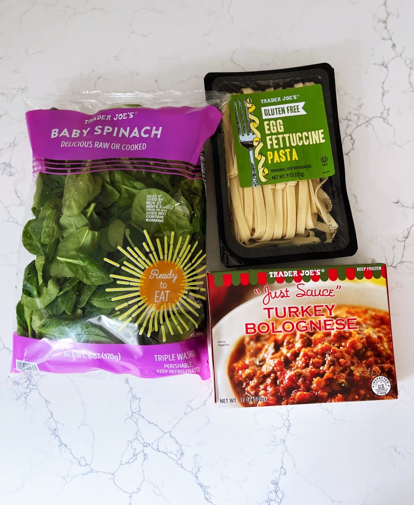 I loooove these egg fettuccine noodles, they are gluten free and I had sooo many of them during my pregnancy when I was not tolerating gluten. They only take a few minutes to boil and are so yummy. I will be adding the “just sauce” turkey bolognese on top and mixing in some spinach and then for sure sprinkling some parm cheese on top.
