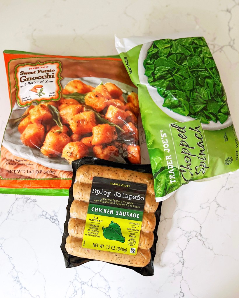 One of my go-to’s every week is chicken sausage with something…it is so easy and we love this brand! I will be pairing the chicken sausage with the sweet potato gnocci and spinach and also probably adding some goat cheese…oh yes def will be adding that.