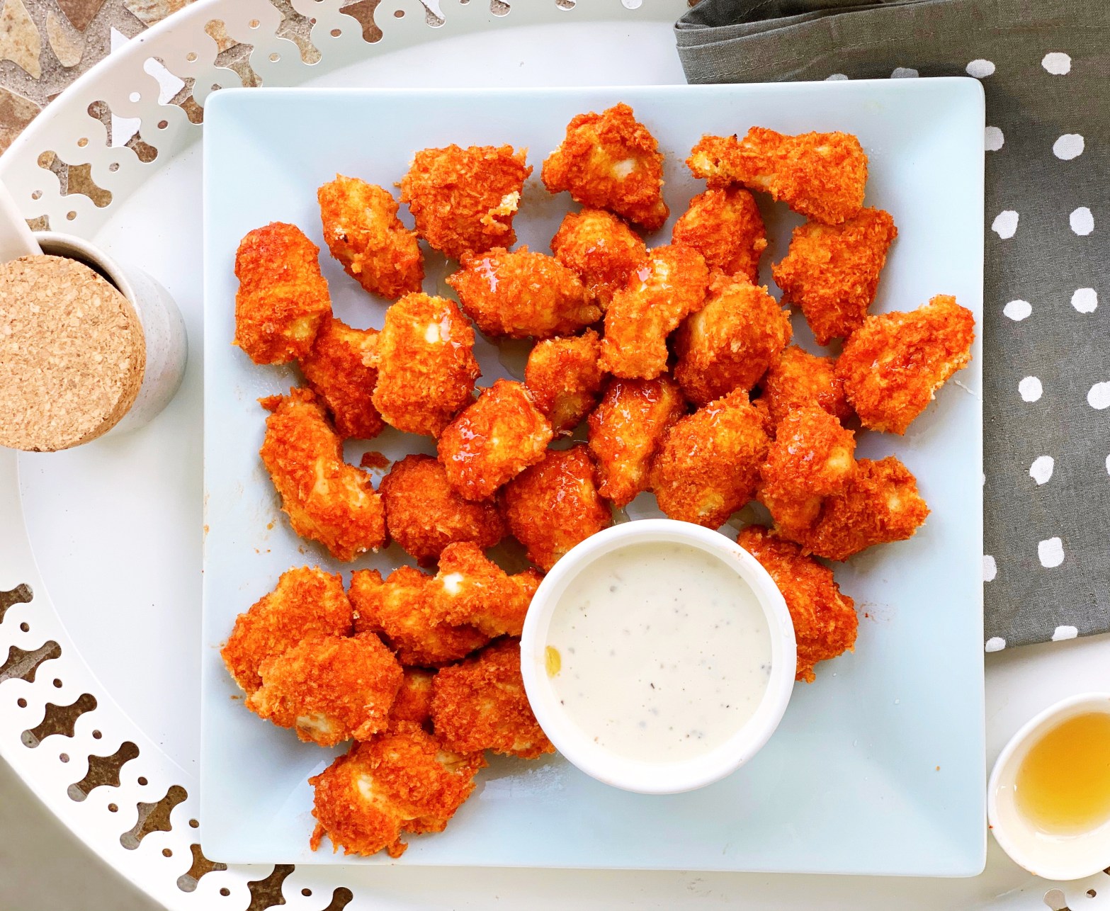 Serve with ranch, blue cheese or any dip you love and drizzle more honey!